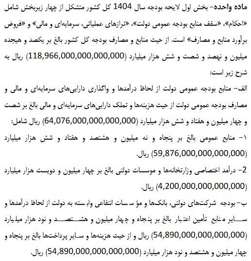 لایحه بودجه ۱۴۰۴ منتشر شد