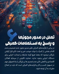 ۶-تعلل در صدور مجوزها و پاسخ به استعلامات گمرکی